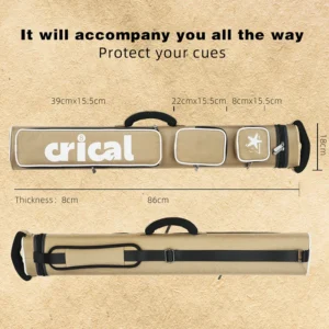 * [WORKMANSHIP]This pool stick carrying case features a black flannel interior, an adjustable non-slip padded comfortable shoulder strap, two handles, reinforced leather stress points, Three spacious front pockets with high quality zippers and top zipper has two metal pulls.