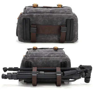*Feature | -Large camera backpack is made from waxed canvas and premium crazy horse leather, durable and sturdy. -The anti-theft opening back can keep all your equipment stay safe. The thick padded compartment can keep all your gears safe. It has a tripod holder on the side and bottom. -It can hold 15.6 inch laptop. -USB charging port | |